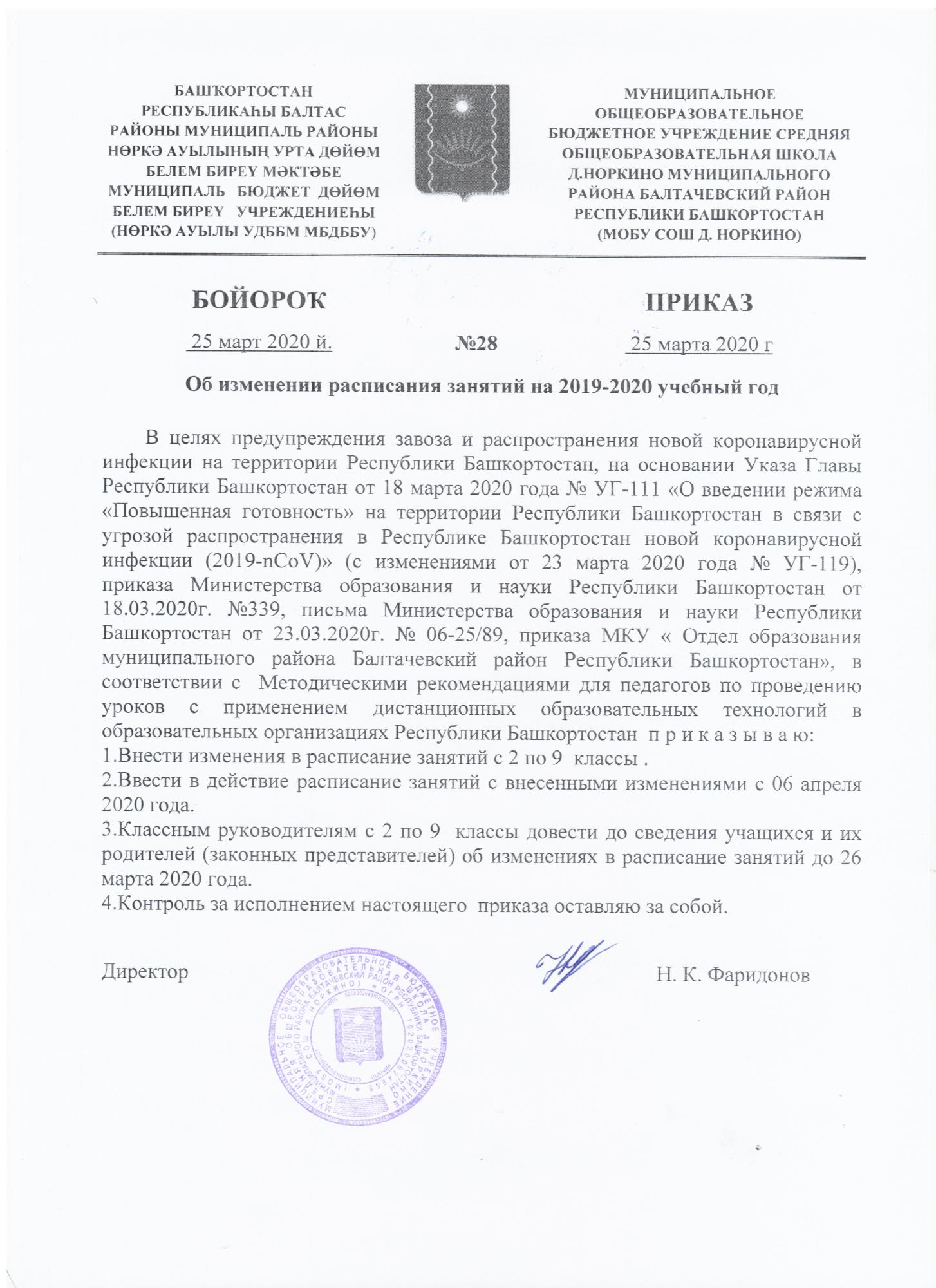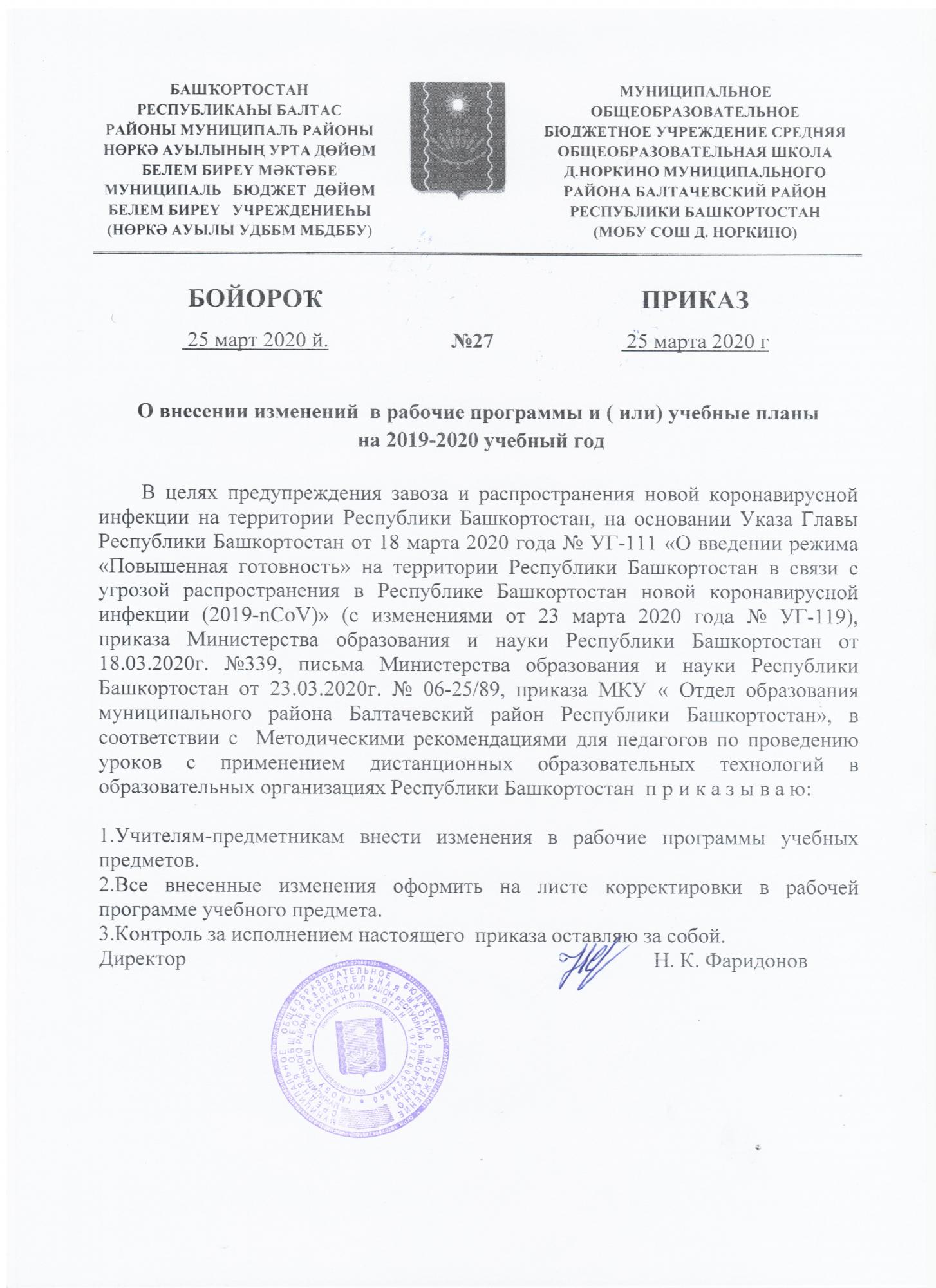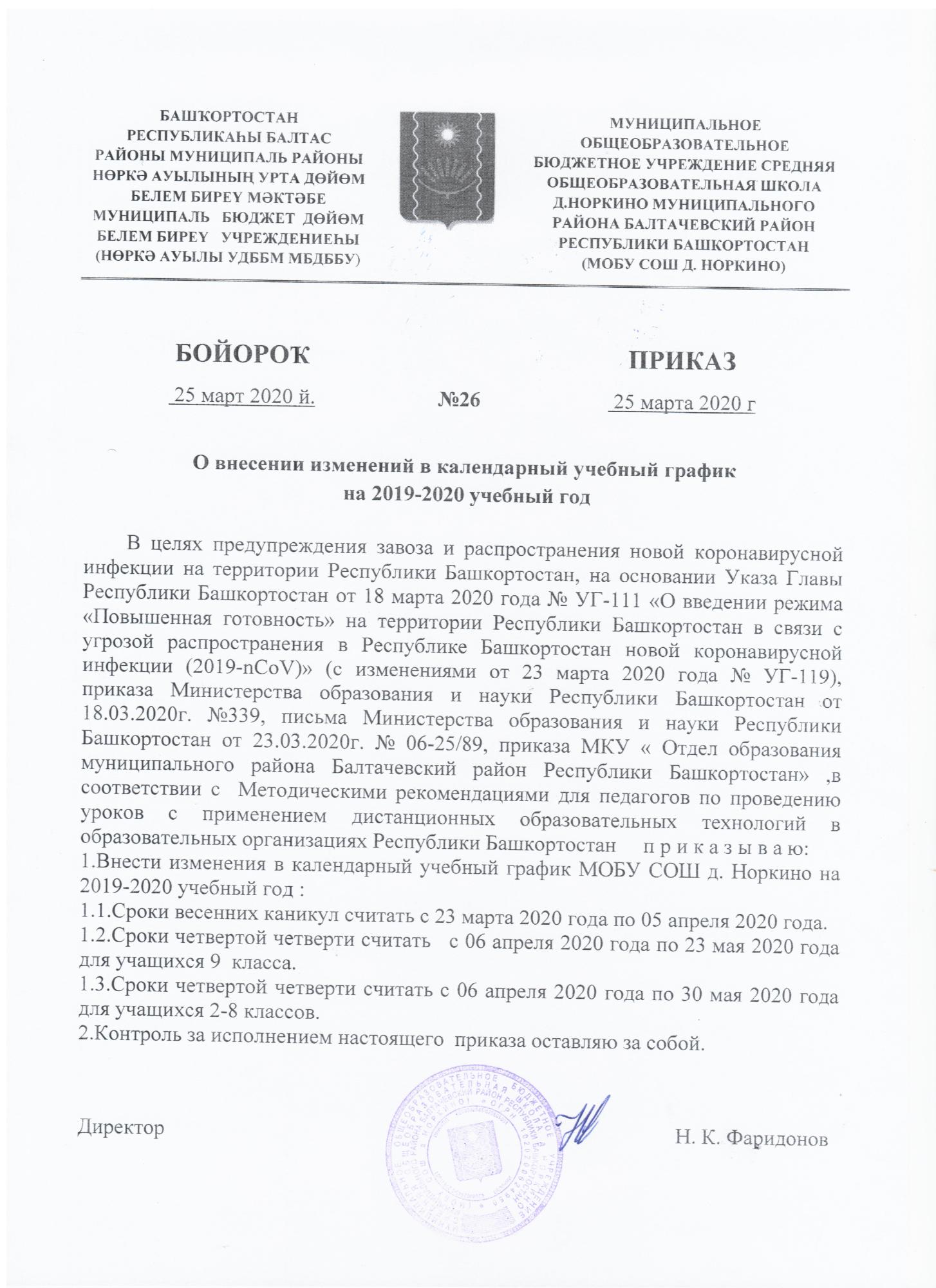 На основании приказа МИНПРОСВЕЩЕНИЯ Российской Федерации от 17.03.2020г. № 104"Об организации образовательной деятельности в организациях, реализующих образовательные программы начального общего, основного общего и среднего общего образования, образовательные программы среднего профессионального образования, соответствующего дополнительного профессионального образования и дополнительные общеобразовательные программы, в условиях распространения новой коронавирусной инфекции на территории Российской Федерации" с 6 апреля образовательная деятельность в будет осуществляться в дистанционной форме.